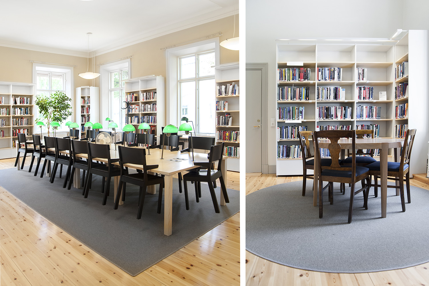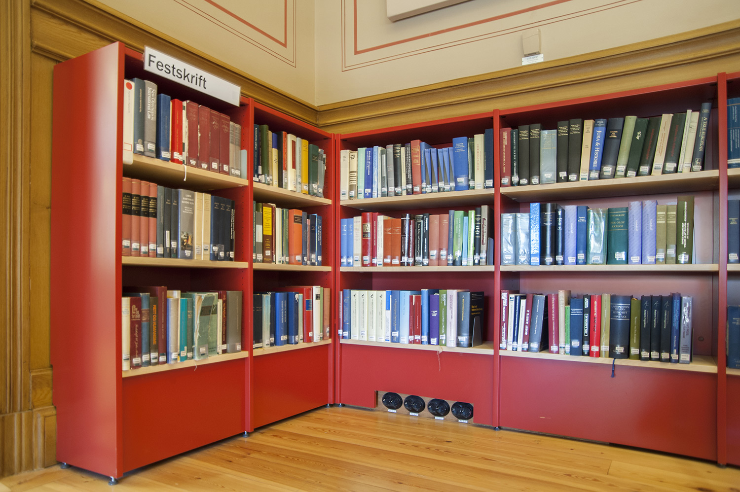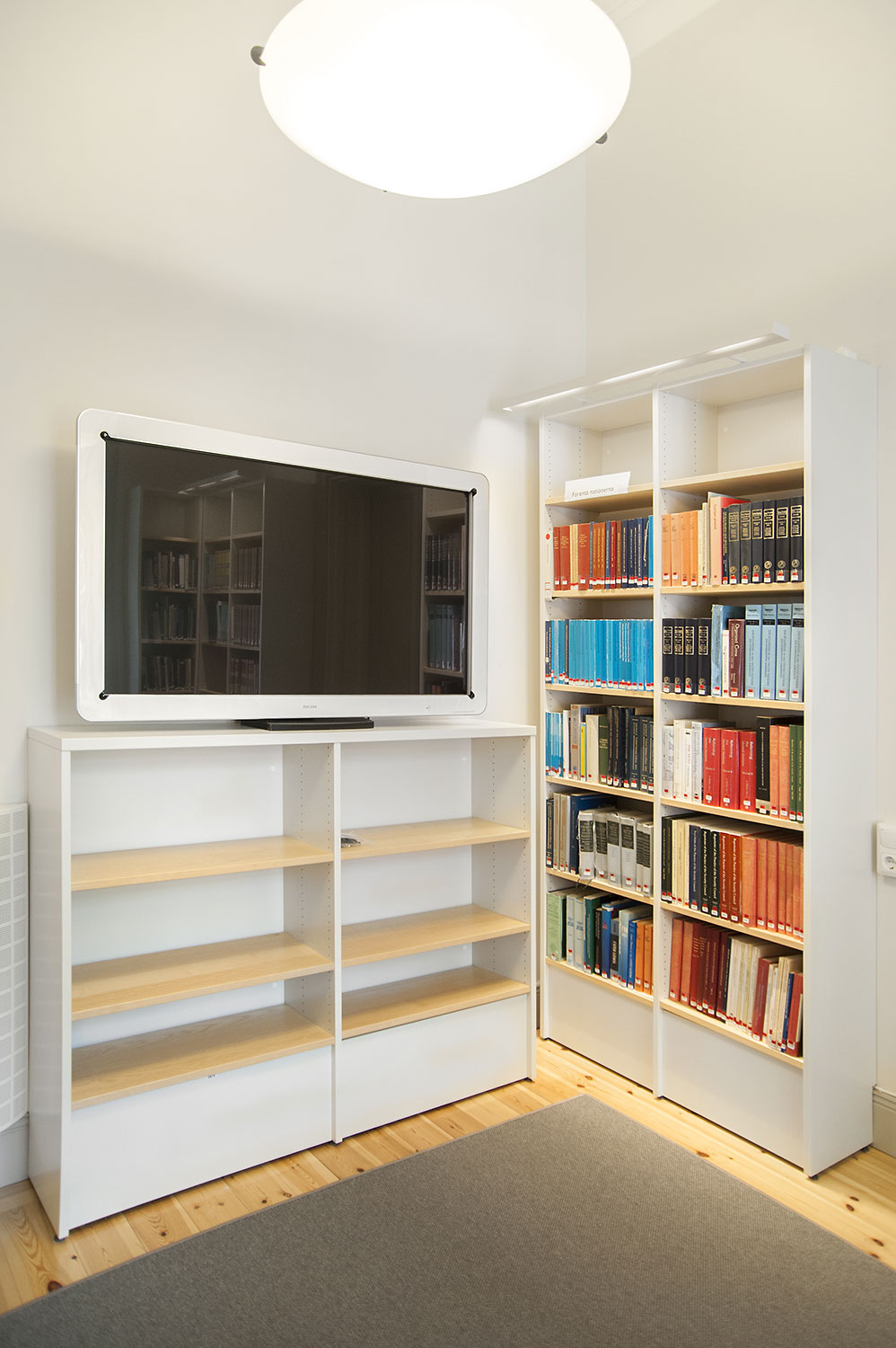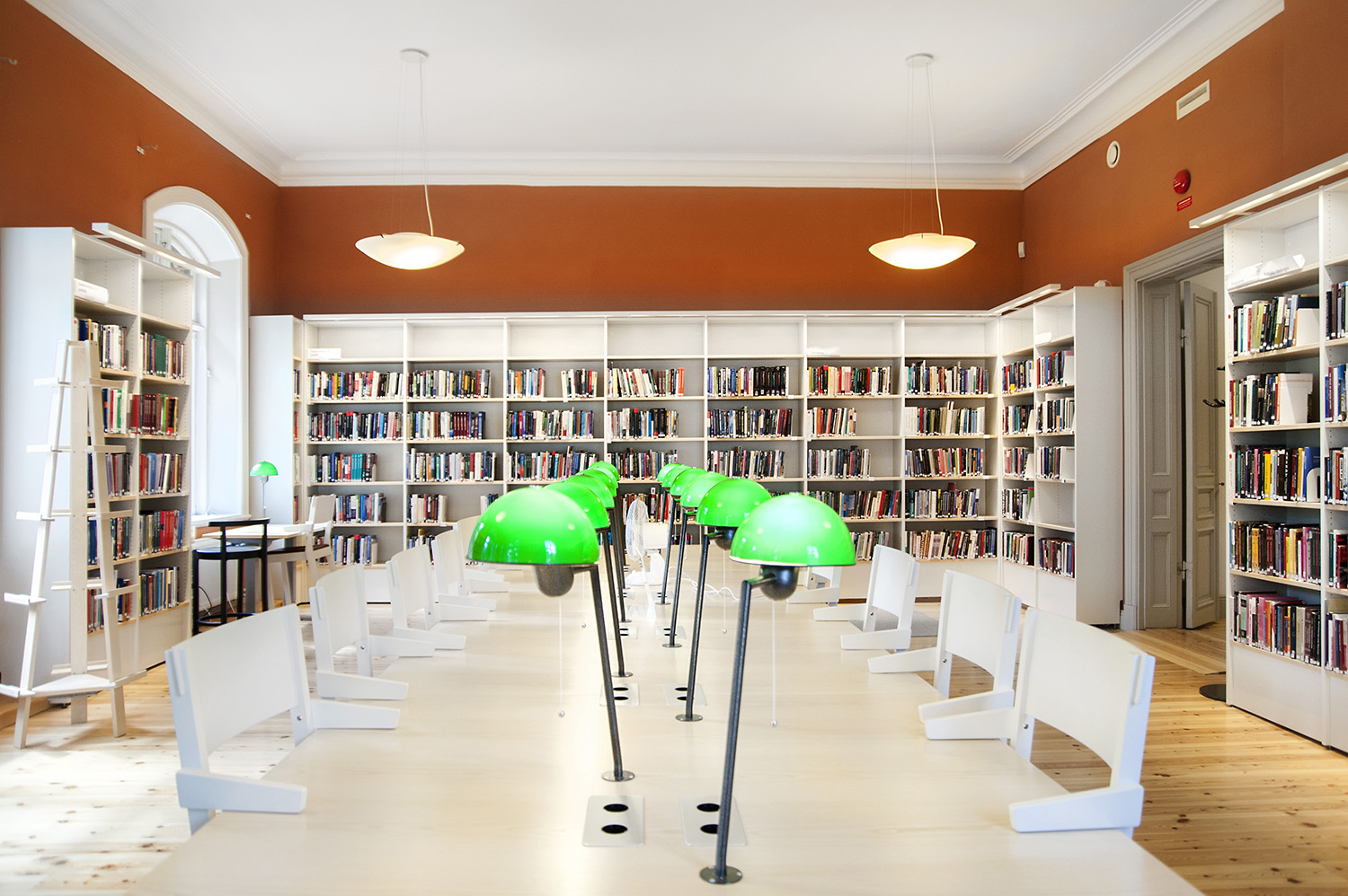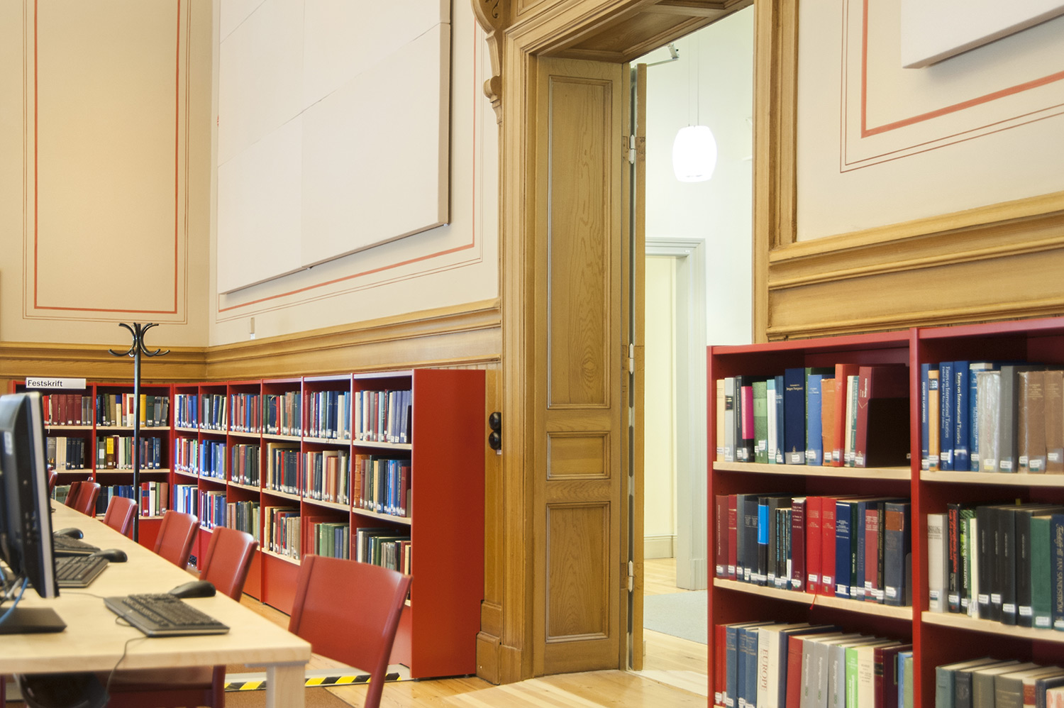 A listed building results in some challenges with the interior of a library where the shelving needs to be adapted for the characteristics of each room with regards to plumbing, sockets and wiring on the floor. The shelving system we have worked with in this project and that now decorates the library and fulfill the needs is Frontline with lacquered panels and shelves in ash.