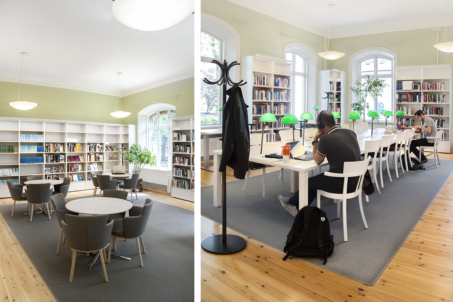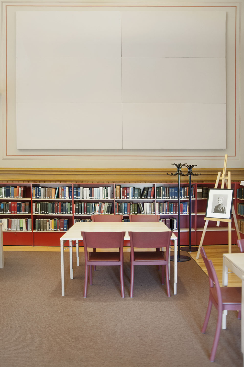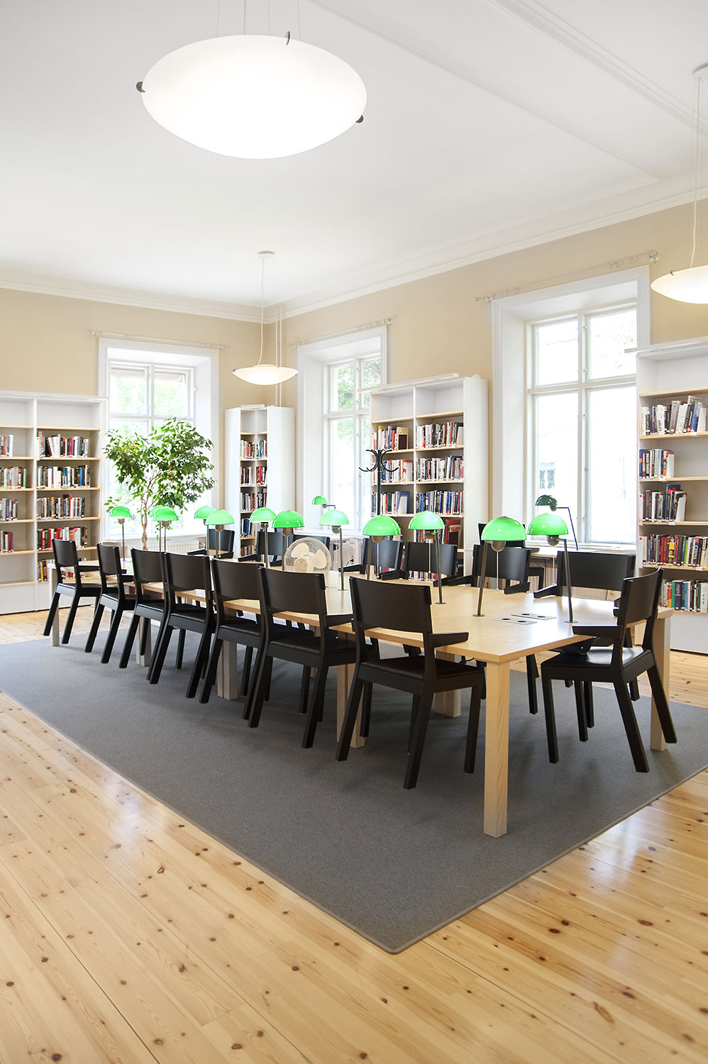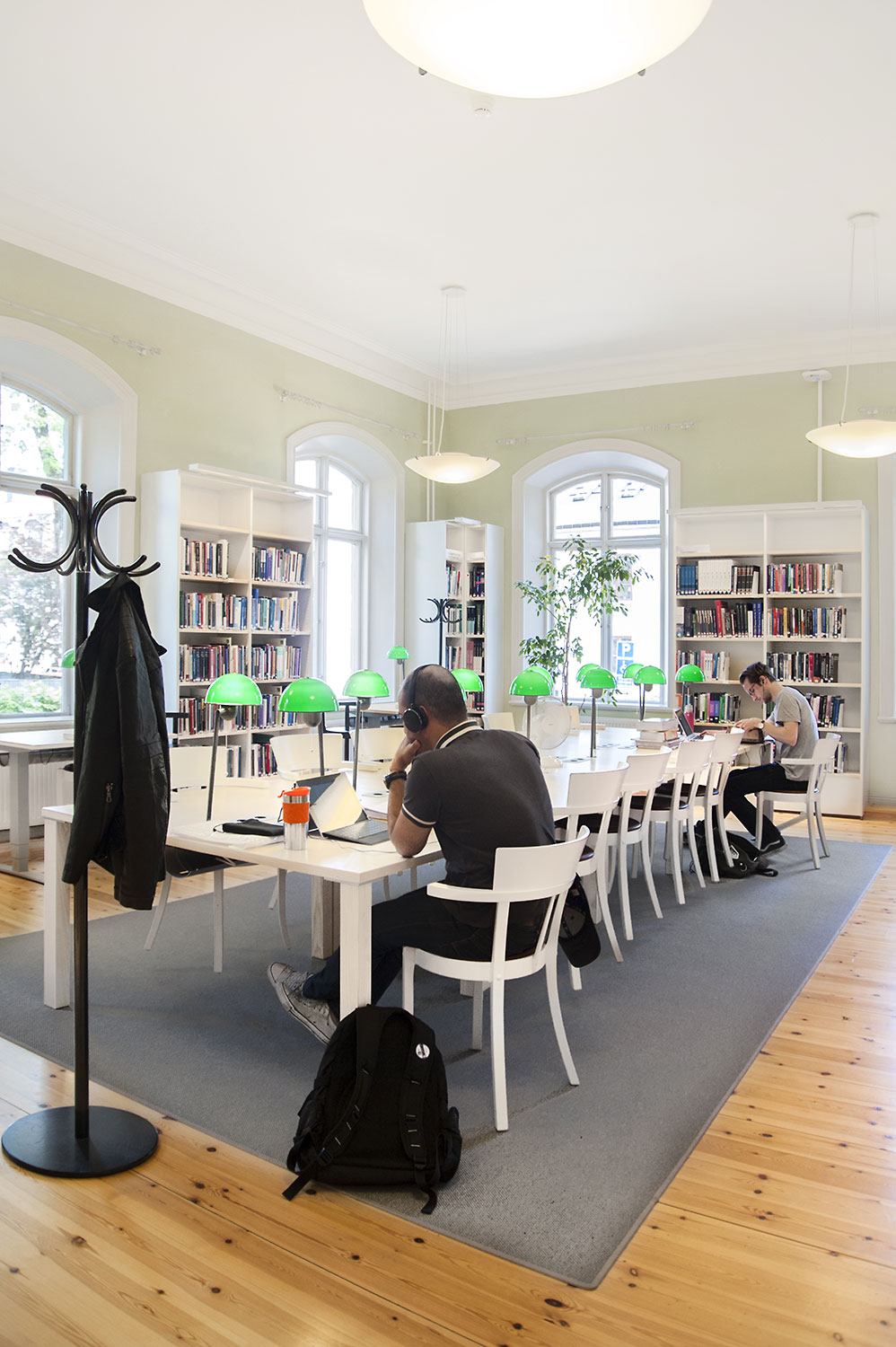 A listed building results in some challenges with the interior of a library where the shelving needs to be adapted for the characteristics of each room with regards to plumbing, sockets and wiring on the floor. The shelving system we have worked with in this project and that now decorates the library and fulfill the needs is Frontline with lacquered panels and shelves in ash.