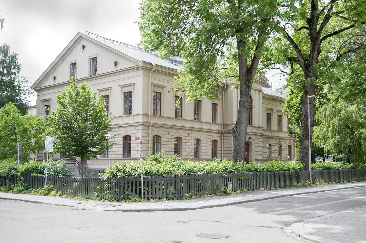 The library is located in Regnellianum; a listed building, built in 1891-1892, with stucco architecture in the Renaissance style. Regnallianum is part of the history of Uppsala University and the architect was Carl Axel Ekholm.