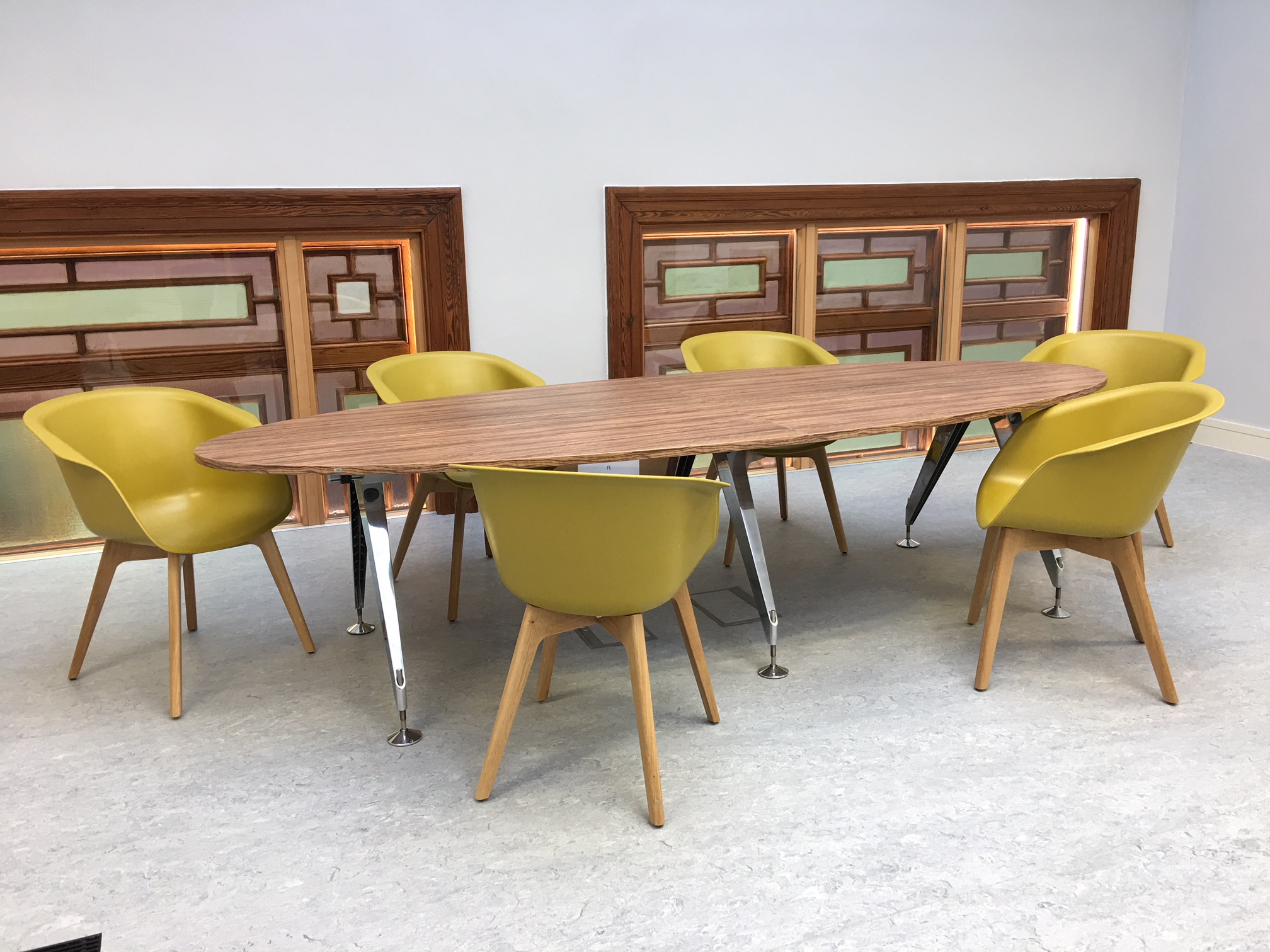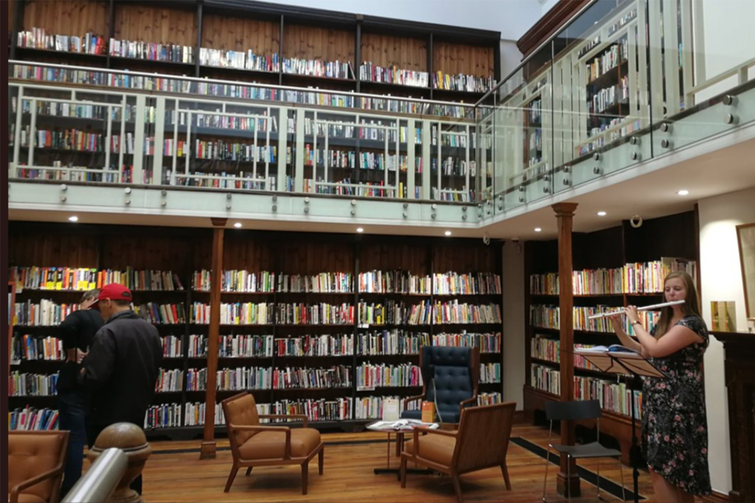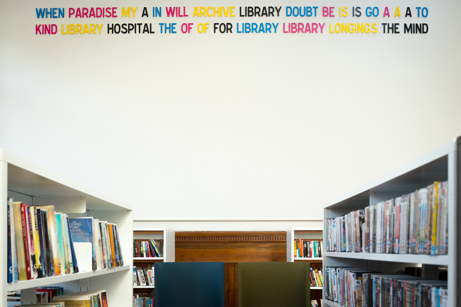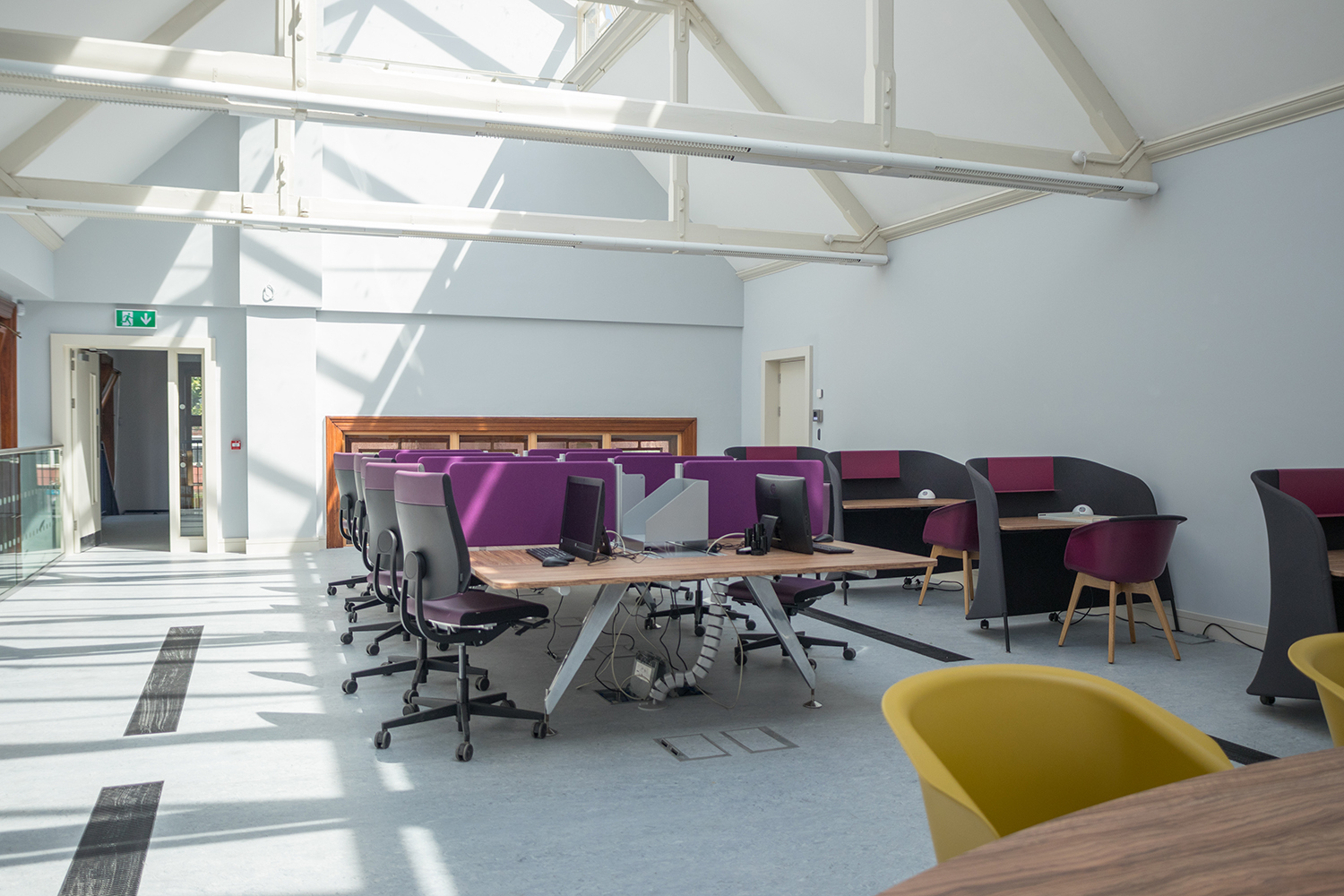 - An adult library space where modern furniture blends seamlessly with the traditional feel of the room. Shelving is flexible and can be easily moved to cater for public events. High back chairs with acoustic properties and fitted tables give users a sense of privacy and somewhere to use their own laptops/devices.