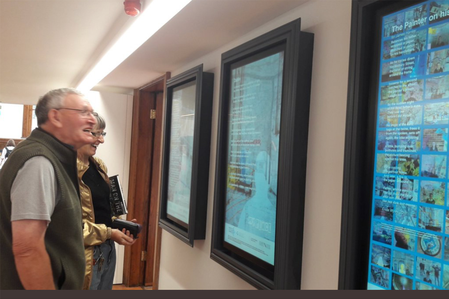 - A display area with virtual exhibitions running on digital screens alongside physical displays.