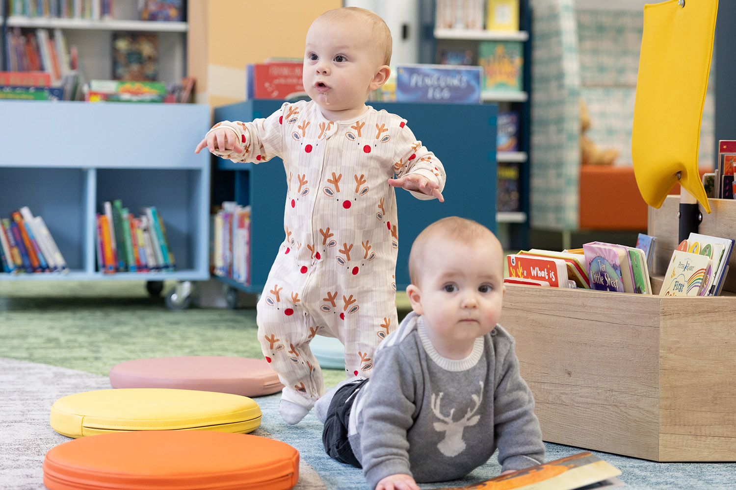 We believe reading and the library space should be fun for children. If children are having fun reading (on their own or with an adult) they will continue to read, helping them develop life skills. If having fun doing so, they will want to return – like a circular economy, have fun, read, have fun, return! Research suggests that Children also think with their bodies. So, our Children’s Library designs connect the mind and body to books.