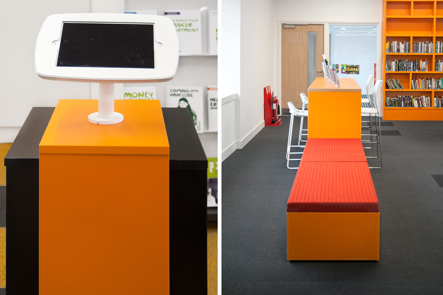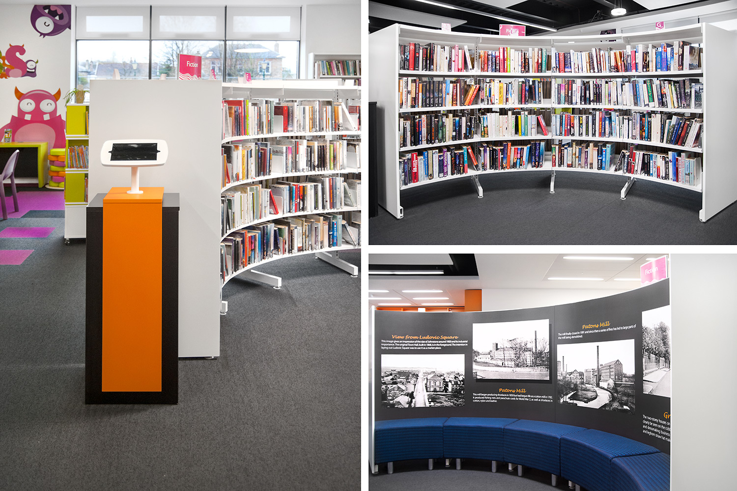 The Design Concept were instrumental in the design of this library together with the flooring, lighting and graphics to ensure we delivered a cohesive design. We worked closely with the architects Holmes Miller and members of the library staff to ensure we were able to meet the library brief.
