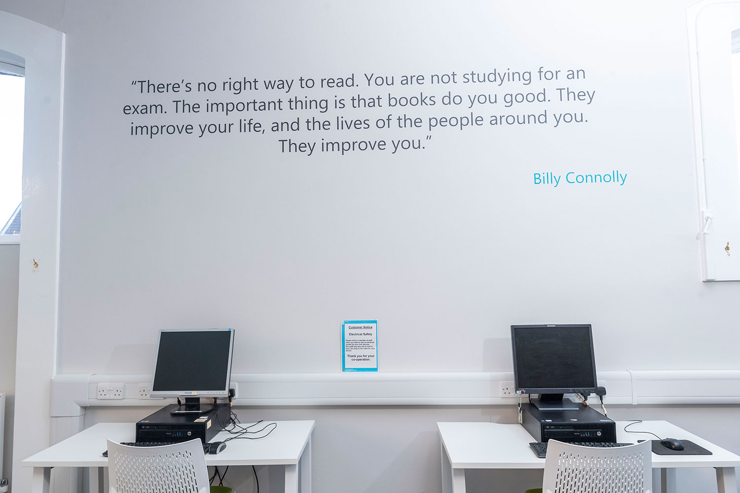 Opening to the public in December 2019 after a year long closure, Partick Library has received incredible feedback. Thedesignconcept worked closely with Glasgow Life on the re-design to ensure the Grade C listed building’s features were considered and included in the design. Original shelving was kept in the main library, with contemporary furniture and displays introduced to modernise the space. Quotes from local comedian Billy Connolly can be found on the walls as a tribute to the local boy who grew up using the library.