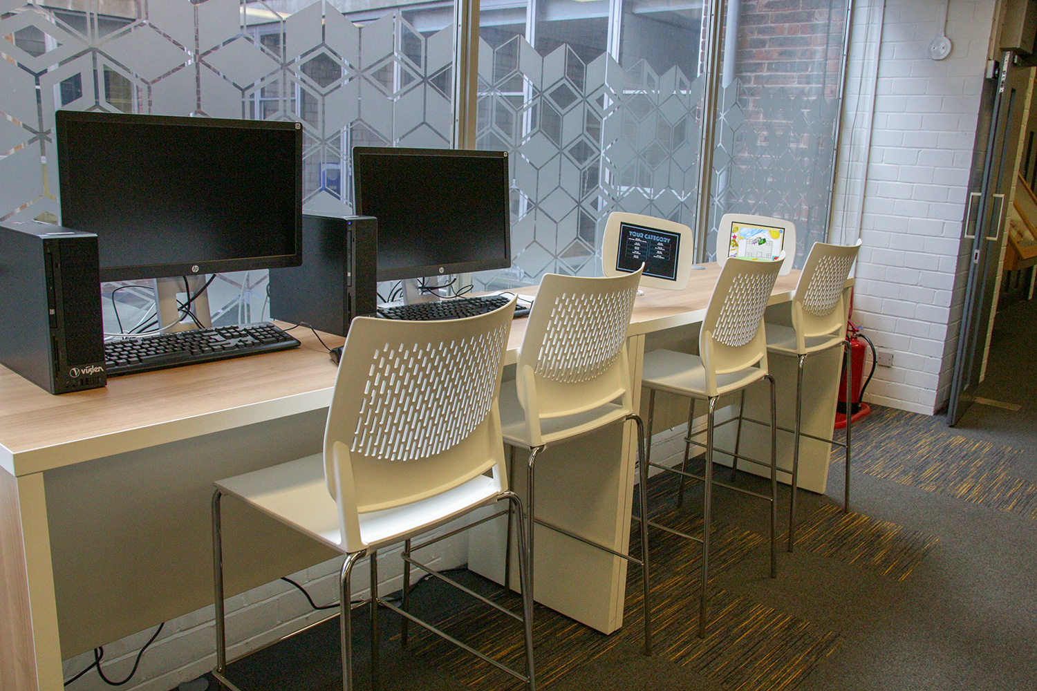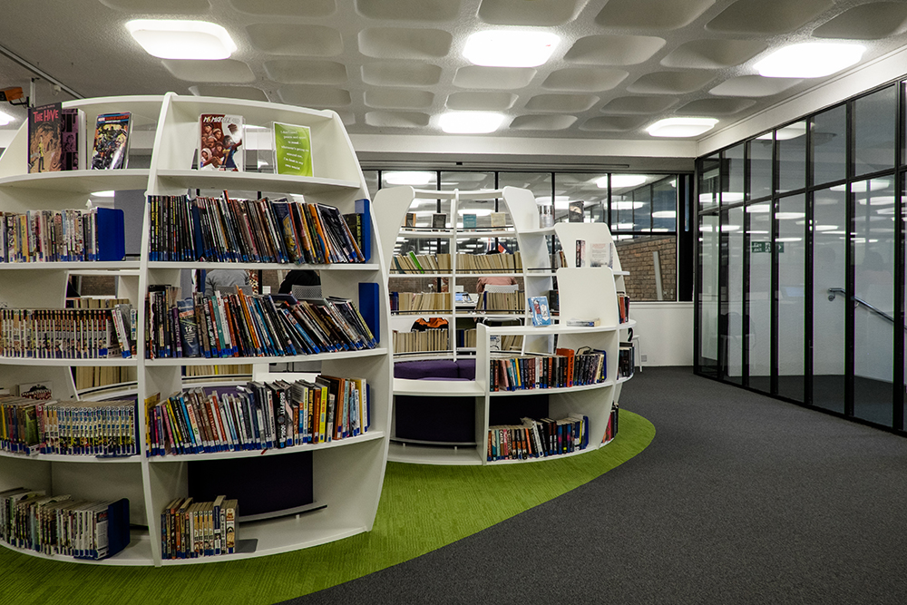 Now a community hub, the space has been used to its full potential and is a success with students eager to study, local artists who can showcase their own pieces as well as view fellow artists’ work and children spending their day playing/reading while parents relax and keep a watchful eye. The library space itself is now modern and vibrant through the use of colourful graphics and contemporary furniture.