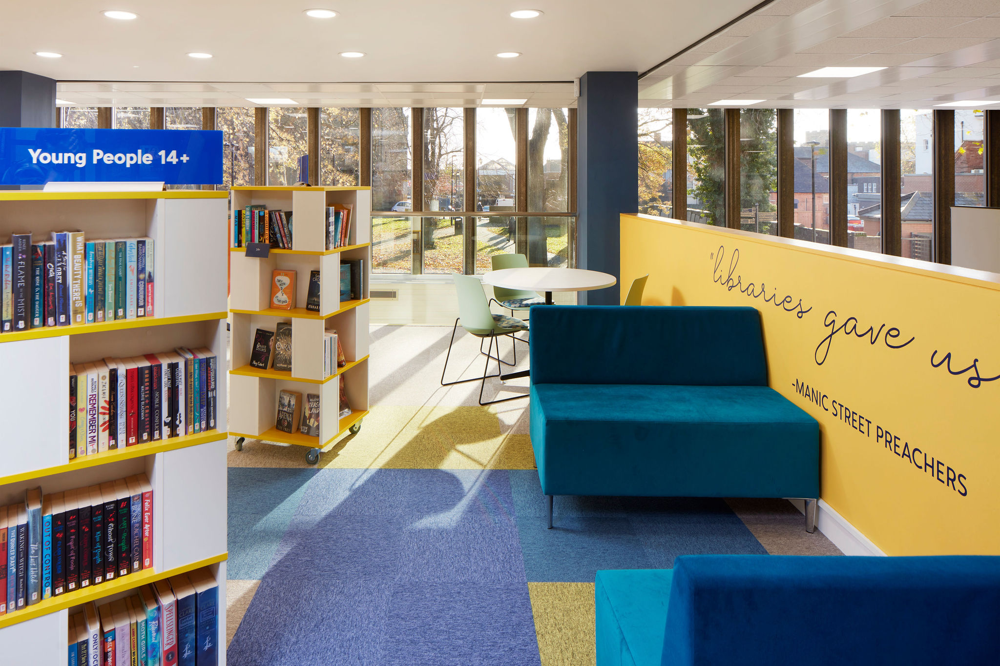 We wanted to ensure that young people also felt welcome, and the space created for teens enables them to relax on the soft sofas or sit and study. The inclusion of a variety of seating options enables teens to read or study, individually or as a group, in a way that they feel most comfortable.
