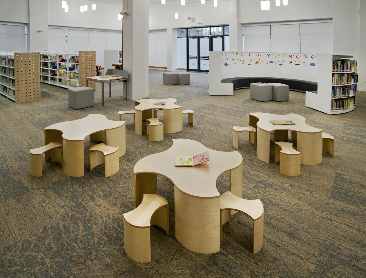 The library layout is zoned so that each key user group has a dedicated space, such as the children’s section, teen zone, fireplace lounge and study & information. Tasteful and functional furniture enhance the zones and their activities.