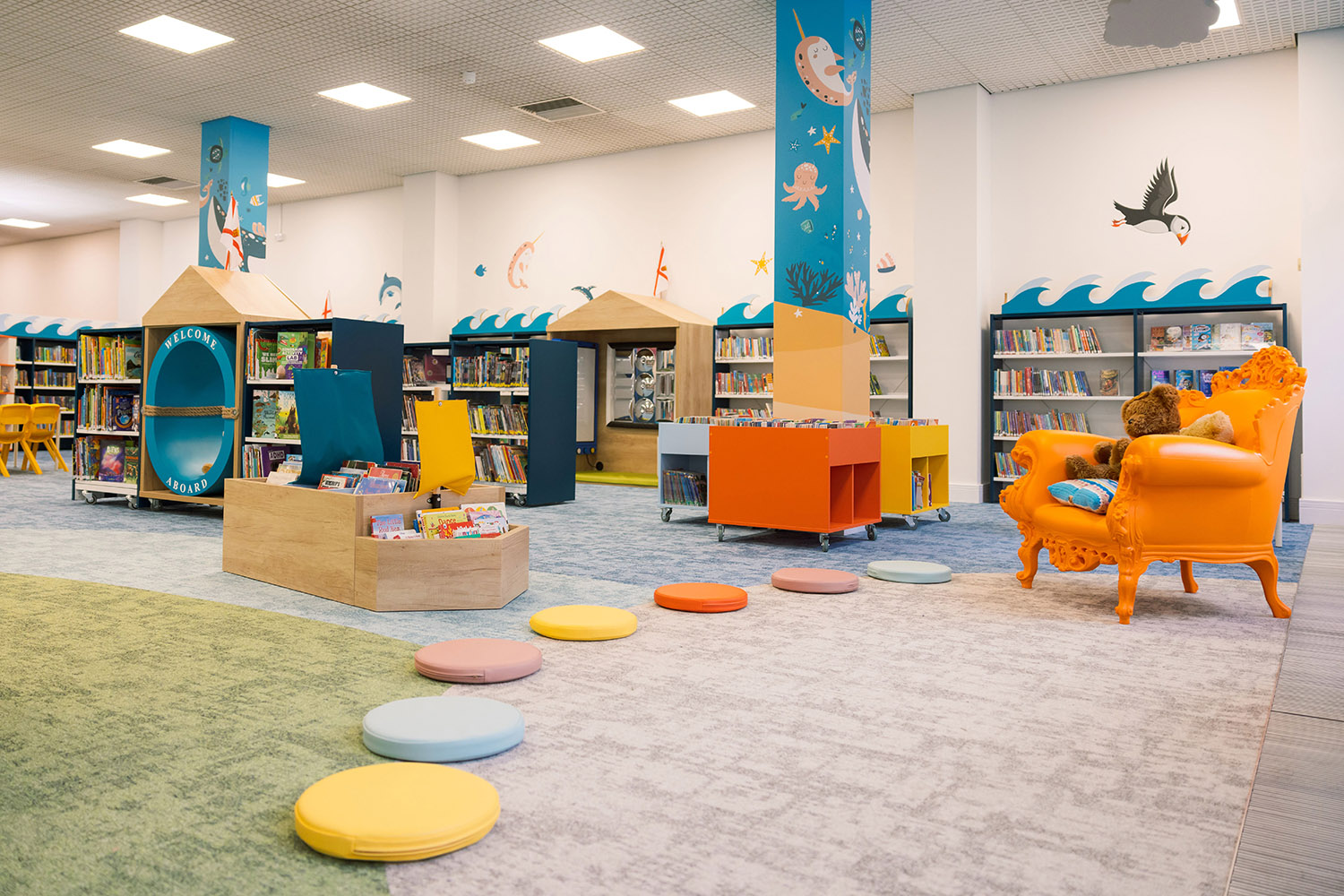 A generous armchair for adults to enjoy reading alone, or for storytelling. Children will gather round at storytelling time for sure.
