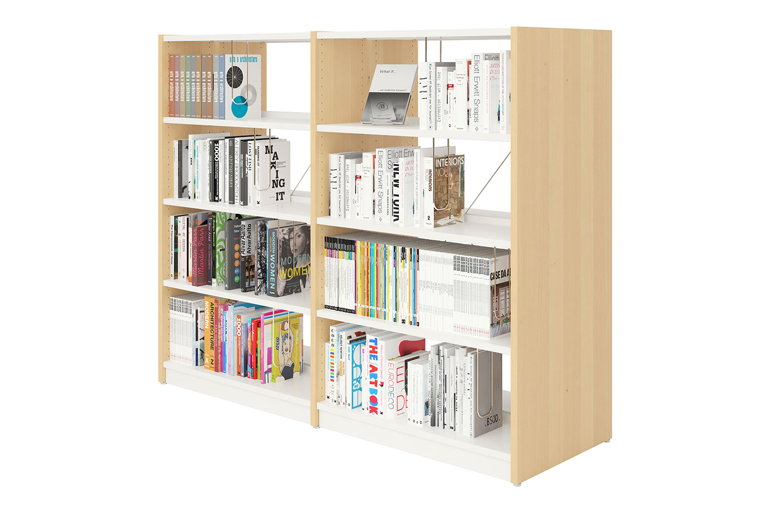The Ratio Wooden Shelving System is available single- or double-sided and can be fitted with metal or wooden shelves, as well as a wide variety of other functional components. The result – a customisable shelving systems that fits the requirements of your specific library. Use the technical specifications under Downloads to construct the shelving system of your choice.