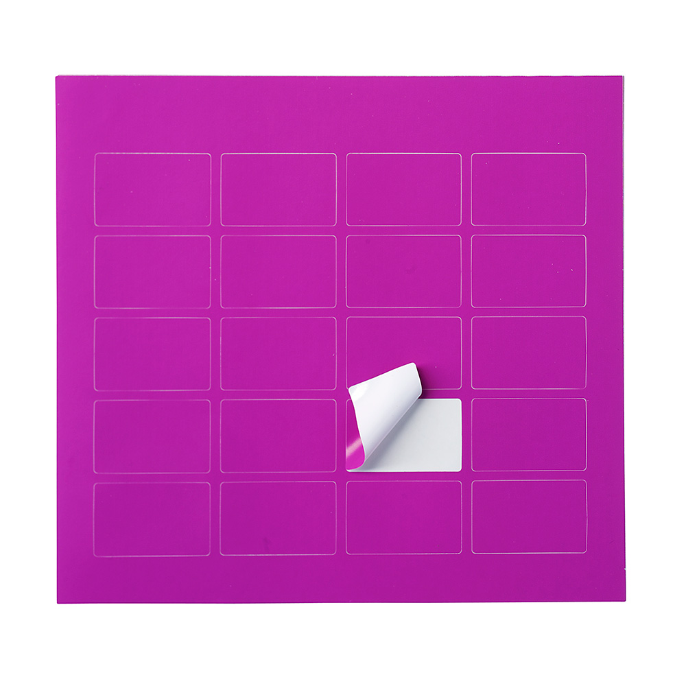 Self-adhesive punched colour markers on sheets.