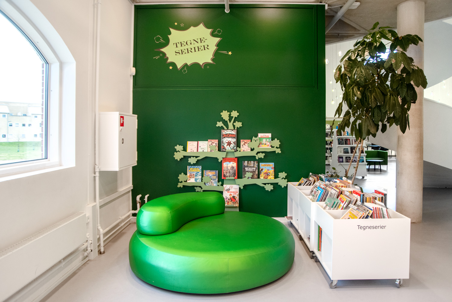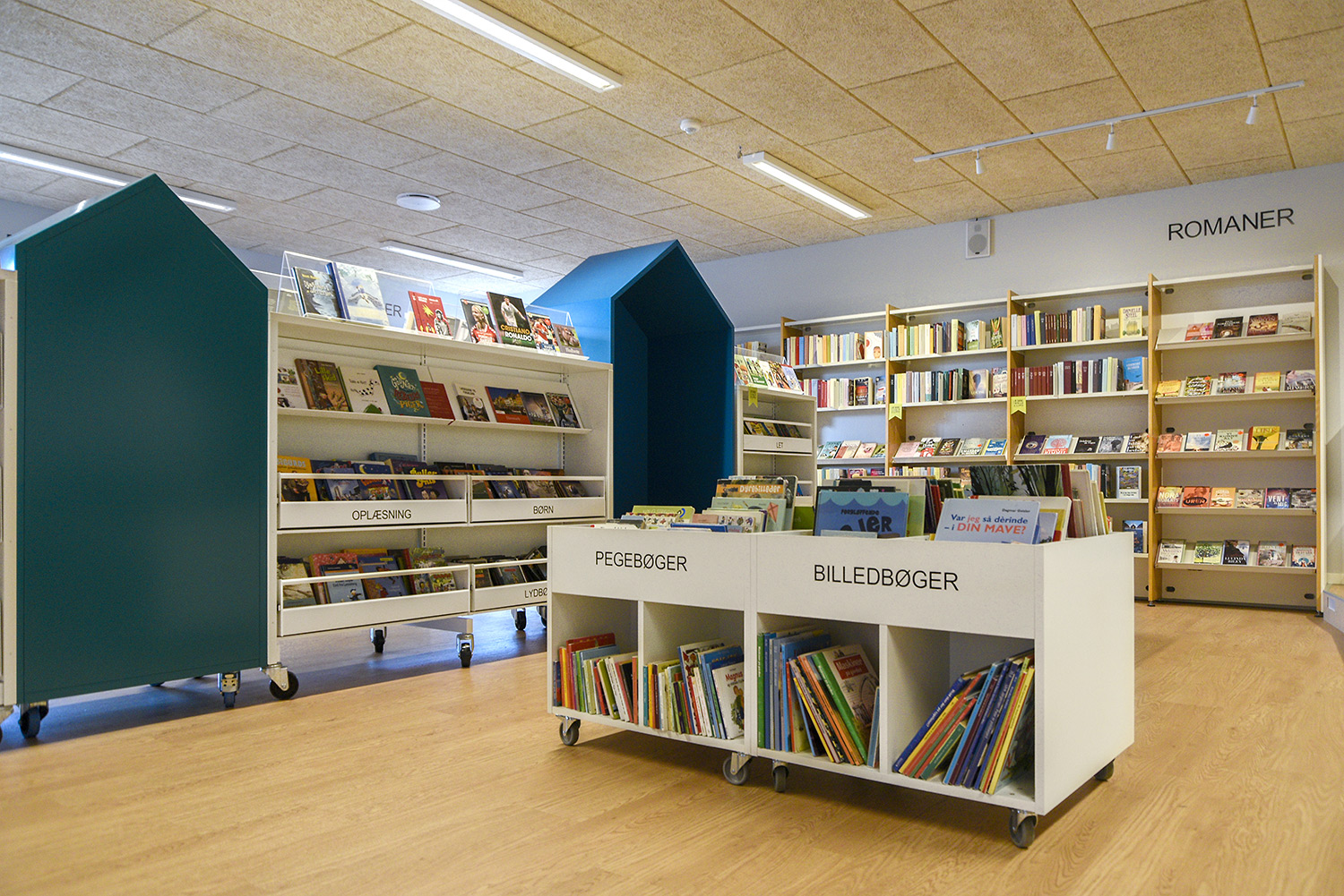 Sara is a functional yet modern browser that presents and stores all types of books and medias in an uncomplicated and visual manner. Depending on the height, the browser can fit both children and adults and be used in all areas of the library.