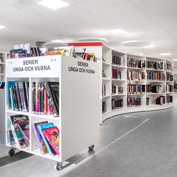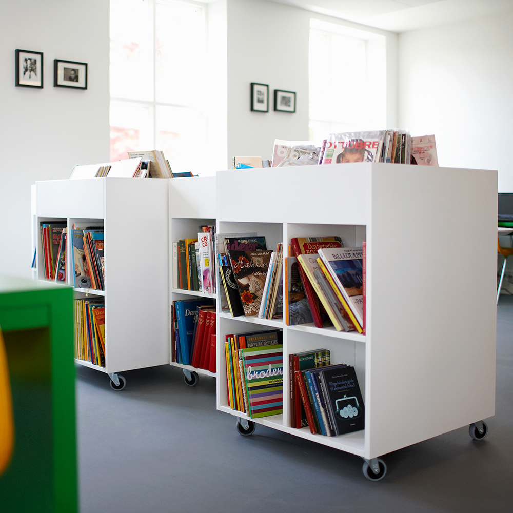 Sara is a functional yet modern browser that presents and stores all types of books and medias in an uncomplicated and visual manner. Depending on the height, the browser can fit both children and adults and be used in all areas of the library.