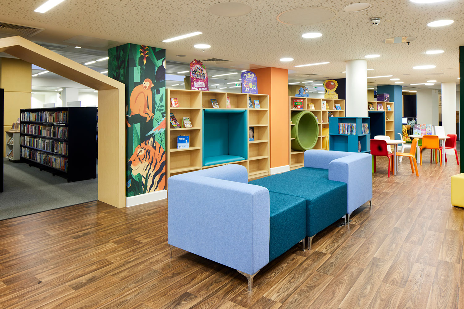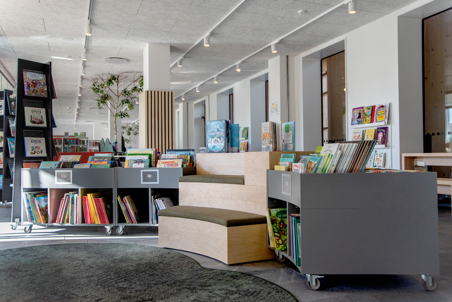 Sara is a functional yet modern browser that presents and stores all types of books and medias in an uncomplicated and visual manner. Depending on the height, the browser can fit both children and adults and be used in all areas of the library.