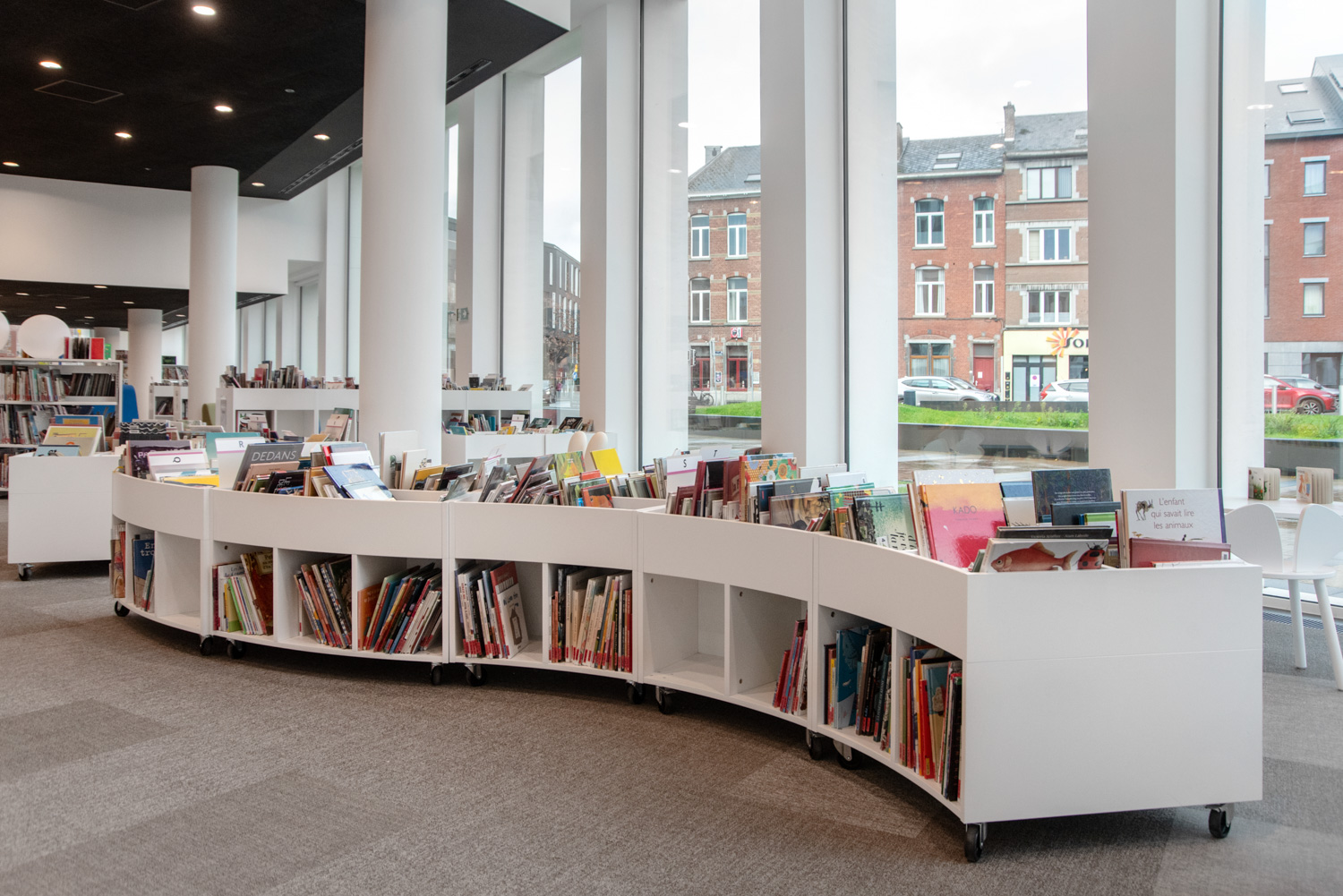 Sara is a functional yet modern browser that presents and stores all types of books and medias in an uncomplicated and visual manner. Depending on the height, the browser can fit both children and adults and be used in all areas of the library.