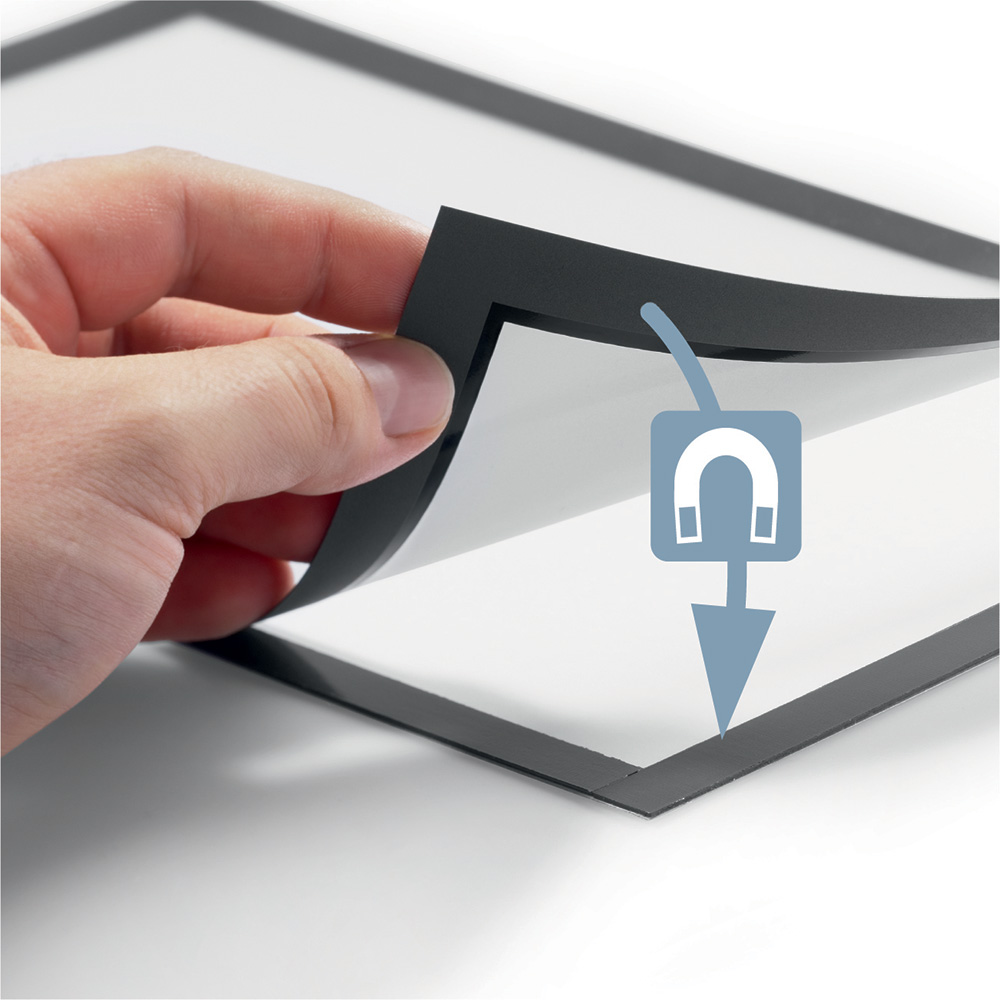 The self-adhesive magnetic frames (Duraframe®) attach easily on any smooth surface such as doors, windows, walls, end panels etc.