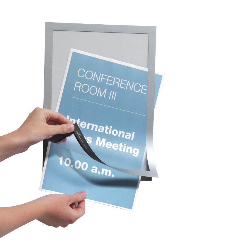 The self-adhesive magnetic frames (Duraframe®) attach easily on any smooth surface such as doors, windows, walls, end panels etc.