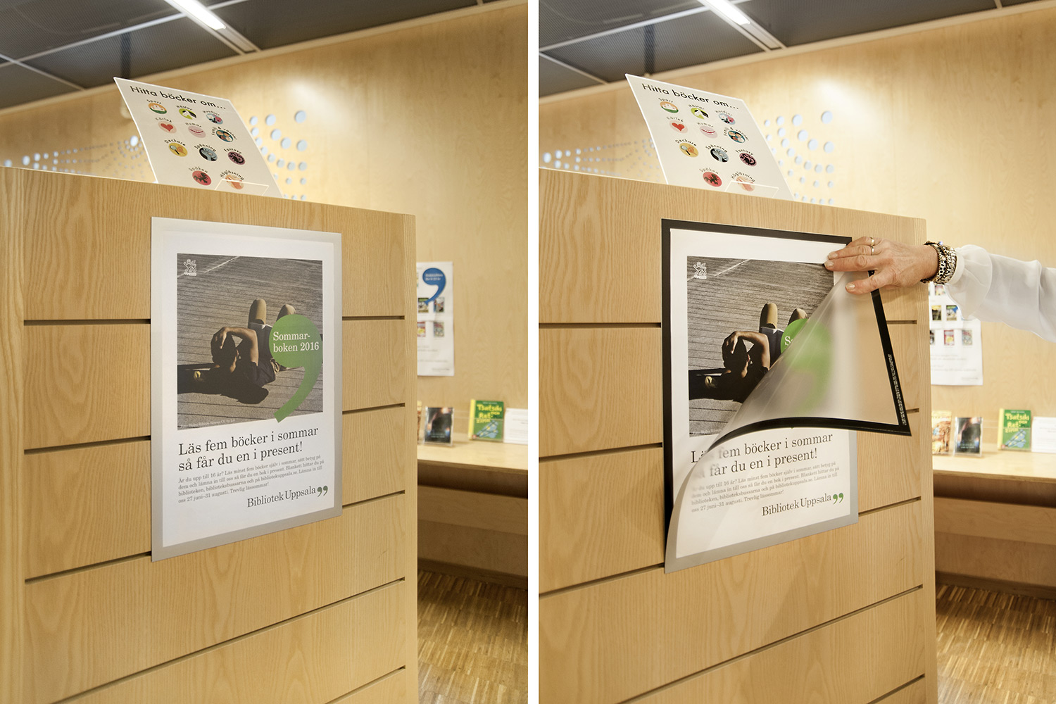 The self-adhesive magnetic frames (Duraframe®) attach easily on any smooth surface such as doors, windows, walls, end panels etc.
