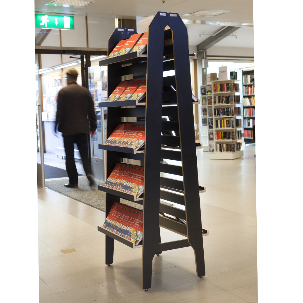 We use laminated birch plywood – here with visible edges. All to create both a durable surface and a lasting construction. Perfect for the most demanding library environments!