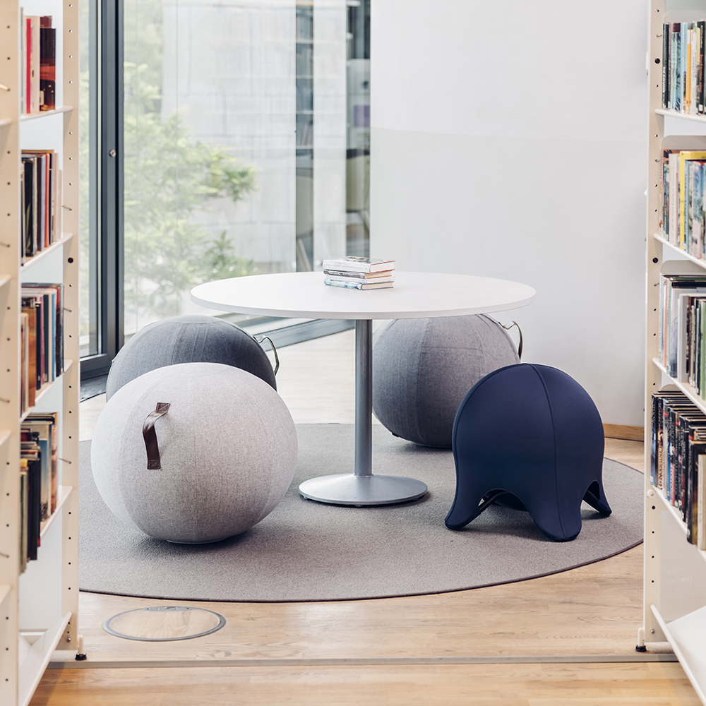 A perfect complement or a direct alternative to a normal chair and it is at the same time a small sculptural piece of furniture that fits in everywhere in the library. E.g. in study environments and seating groups. Or why not place it in between the long rows of shelves for a quick sit down while browsing through your next book.