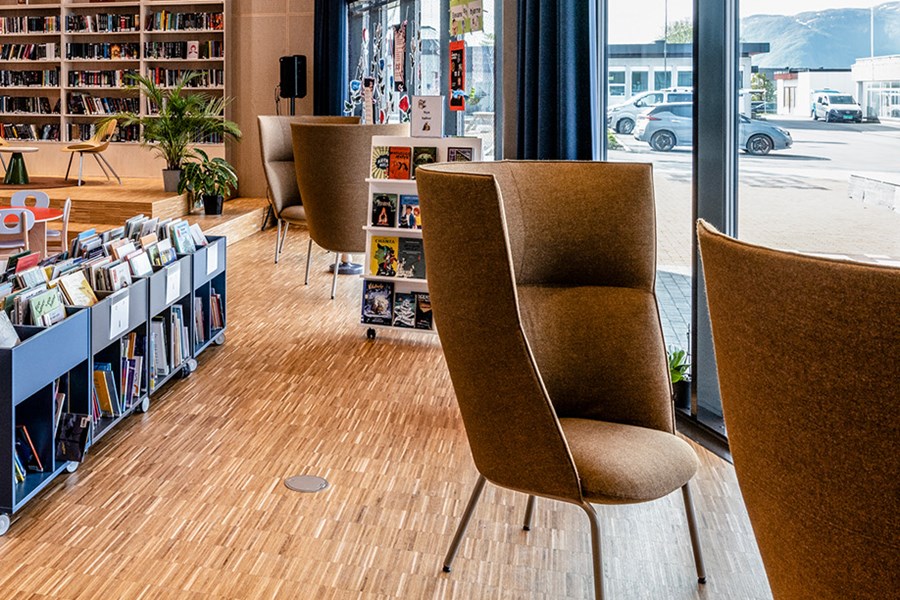 Tind is a series of sofas and chairs with either a high or low backrest. The series is a comfortable and beautiful piece of library furniture with its round organic shapes and recognizable details.