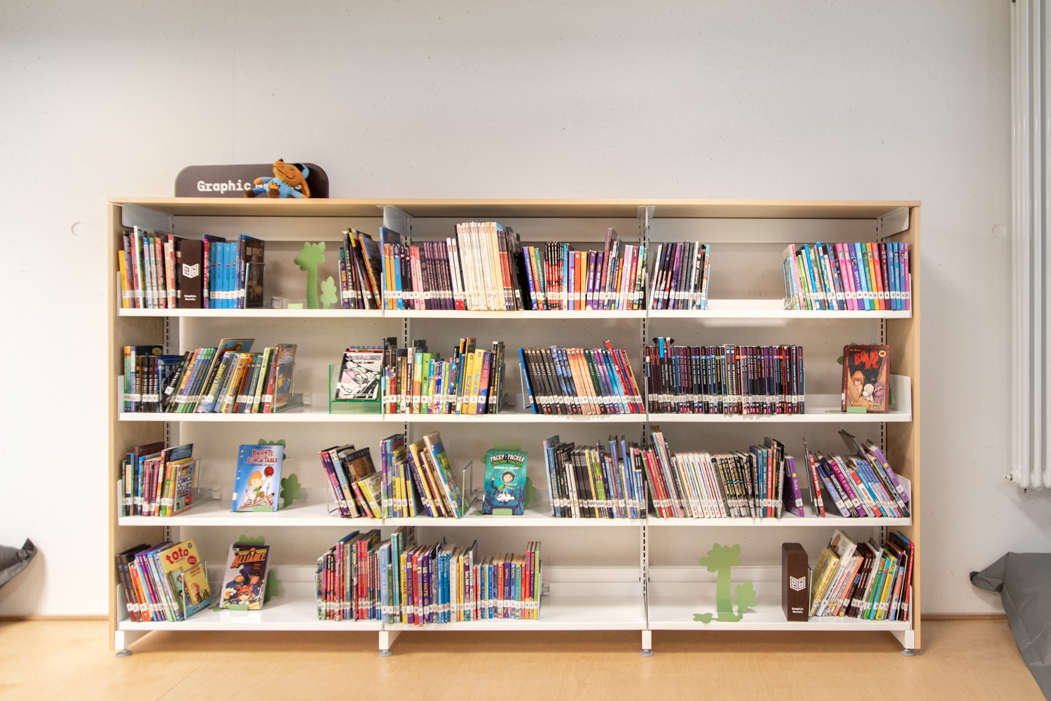 A decorative and eye-catching front display stand for presenting also larger volumes with a generous display depth.