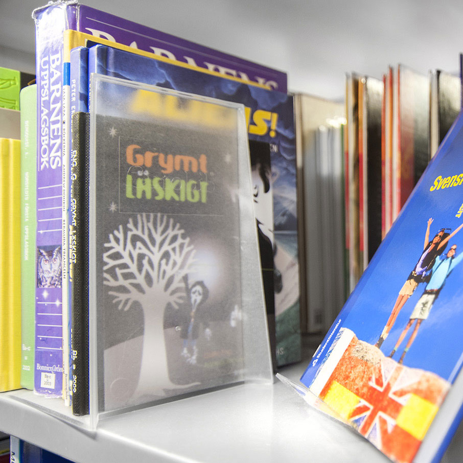 Easy grip, stackable book support with non-slip tape and a grooved upper surface for better book support.