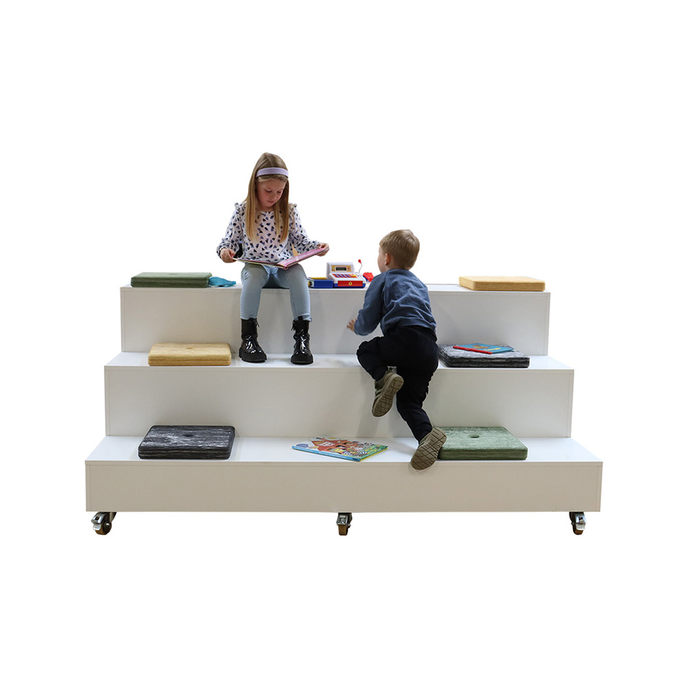 The seating podium and stage feature a strong and robust construction and can be used in all public libraries as well as cultural and educational institutions for children and adults of all ages.