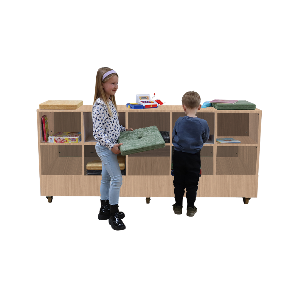 With a minimalist and aesthetically pleasing design, Verona allows multiple units to stand closely together or up against a wall. On the back side, ample space is provided for storage of items such as seat cushions, games, books and toys, allowing for creative expression. The top podium can also be conveniently flipped, positioning the storage compartments forward.
